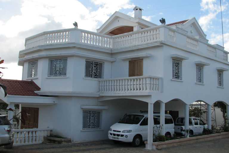 Pour vos séjours à Madagascar chambres d’hôtes « chez MINO », la maîtresse de maison vous propose dans sa belle villa toute neuve, 4 grandes chambres spacieuses et indépendantes, une salle d’eau avec chauffe eau, un living spacieux de (20mx 5m) avec cheminée ; une cuisine carrelée et placardée, une salle d’eau avec chauffe eau, une terrasse avec vue dégagée sur les villages environnants, un parking pour 10 voitures…