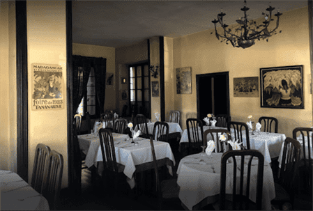 Dans une magnifique maison traditionnelle malgache centenaire, admirablement restaurée, au cadre élégant (ambiance début du XXe siècle avec une touche anglaise), une adresse qui a un peu perdu de sa superbe ces dernières années, mais qui demeure une valeur sûre dans la capitale. Carte très riche, proposant aussi bien des viandes, des poissons, des couscous deux ou trois viandes que des pizzas au feu de bois.bon plan